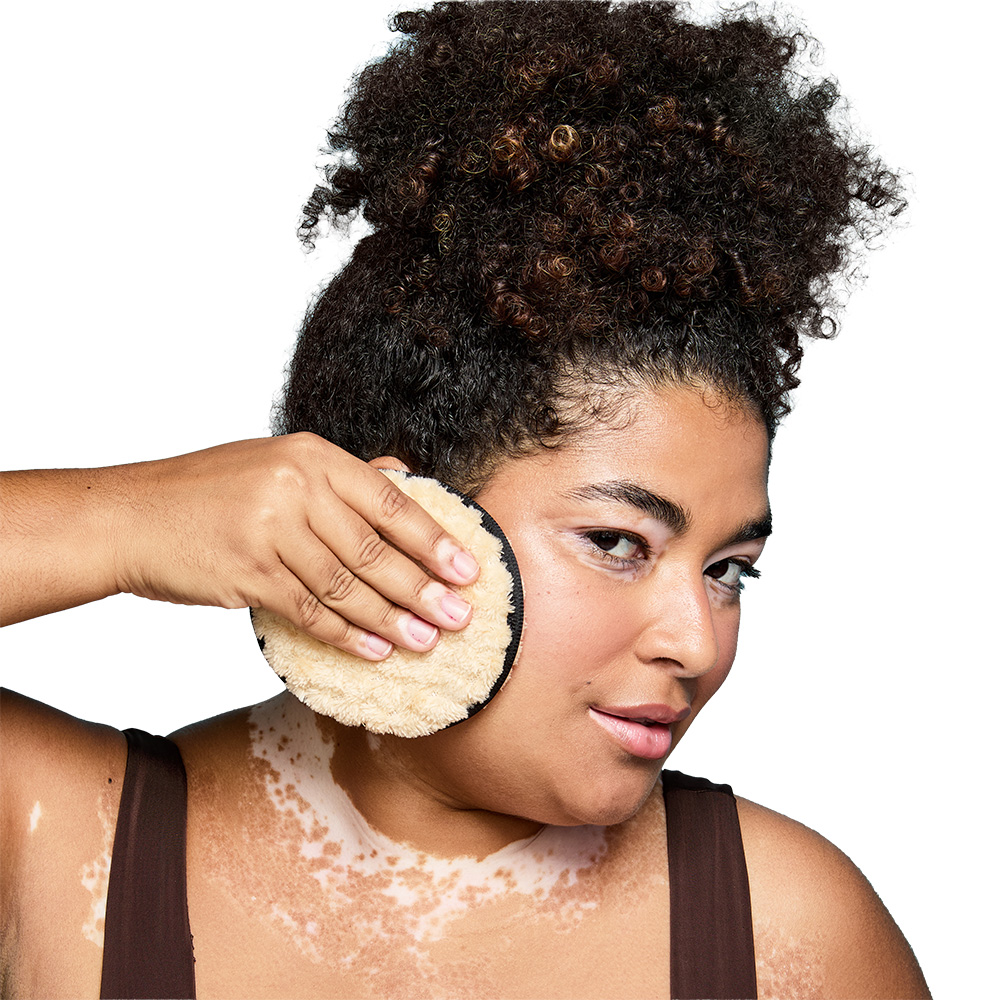 Basta umedecer com água fria ou morna e passar suavemente pelo rosto para remover até as maquiagens mais resistentes.