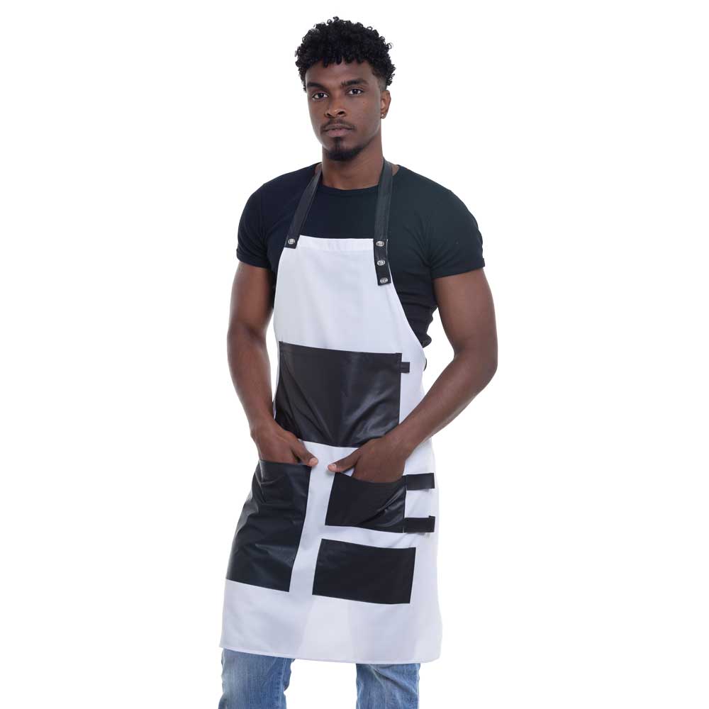 Avental em Oxford Branco Regulável com Bolsos e Suportes Profissional.