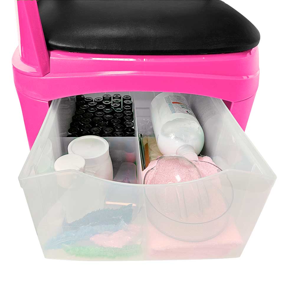 • Armazenamento Inteligente: Gaveta lateral espaçosa, perfeita para organizar os materiais de trabalho, garantindo fácil acesso durante o atendimento.