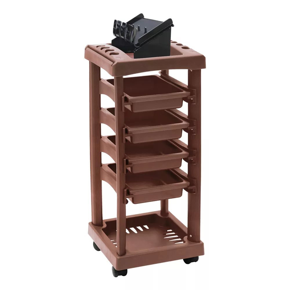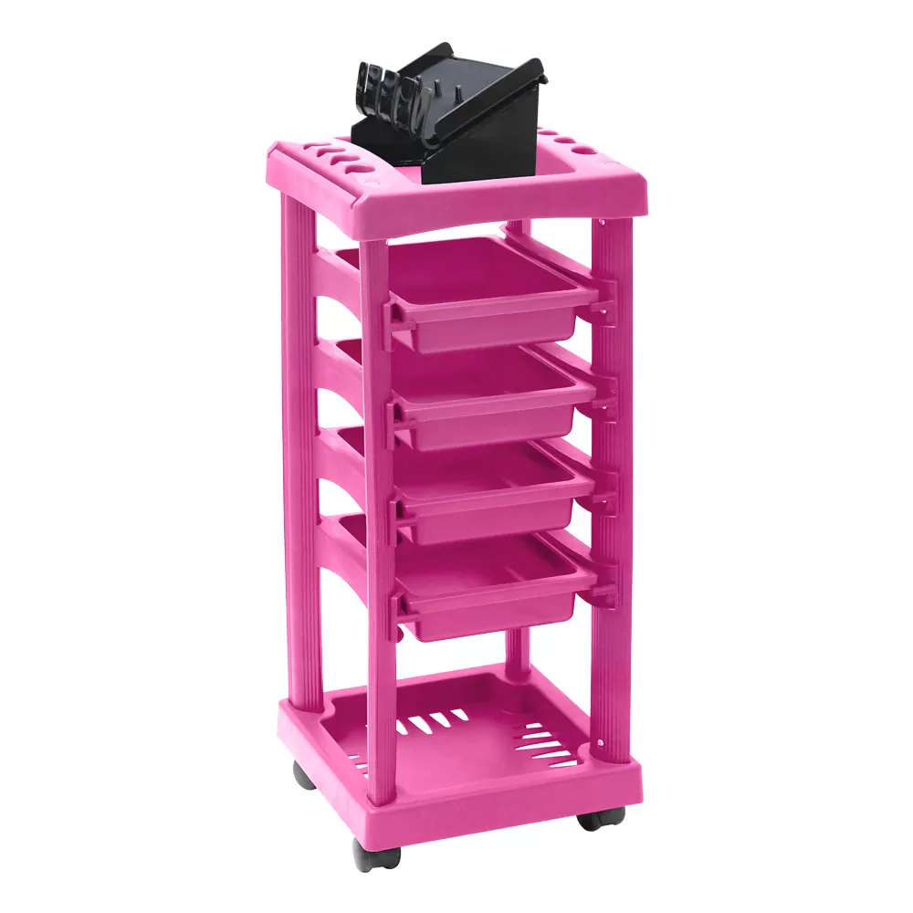 O carrinho é completo, com 4 gavetas para todos os acessórios que precisam estar ali ao seu alcance e também tem 4 rodinhas para que facilite o transporte do carrinho para onde for preciso.