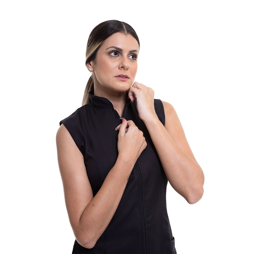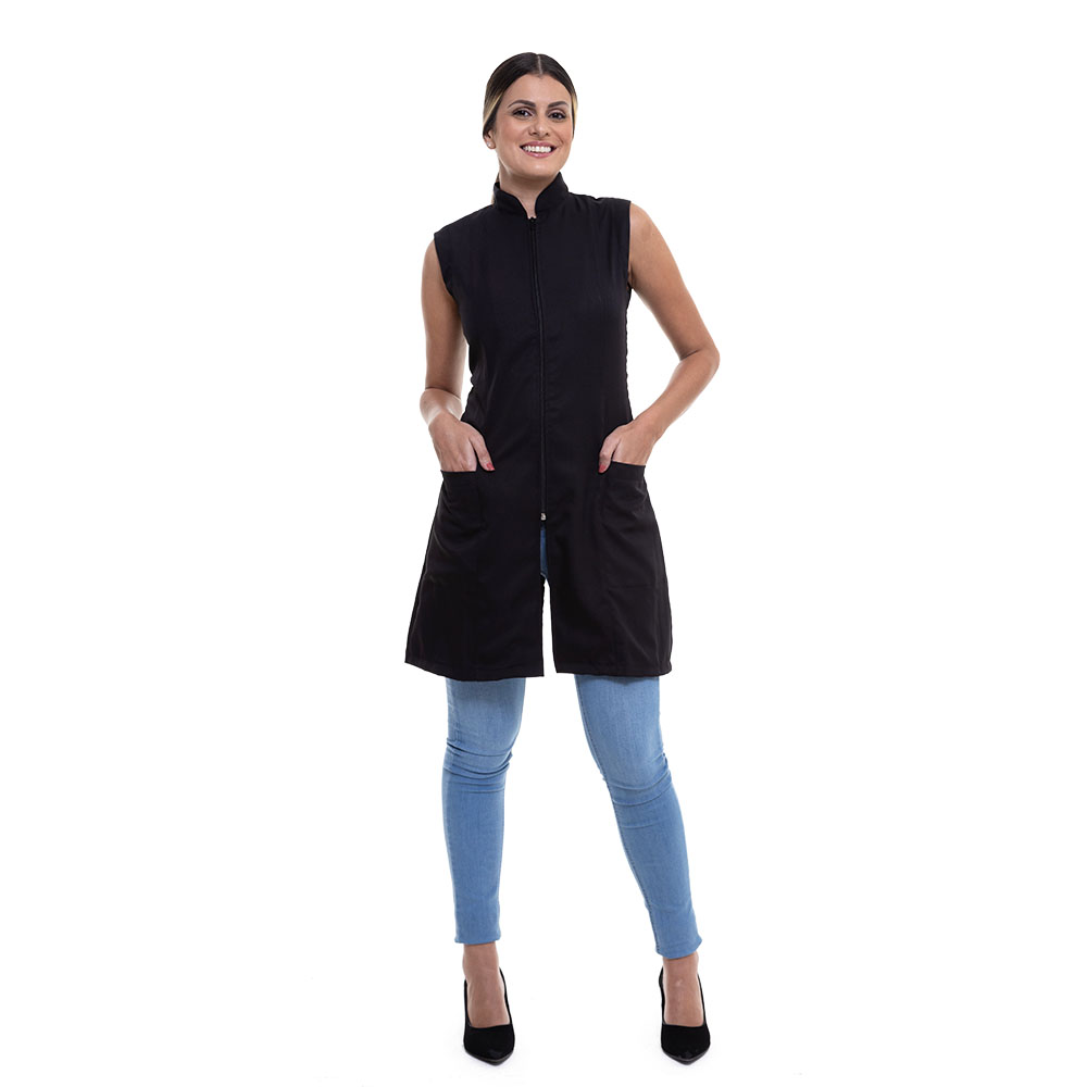 JALECO EM GABARDINE COM ZÍPER E SEM MANGA