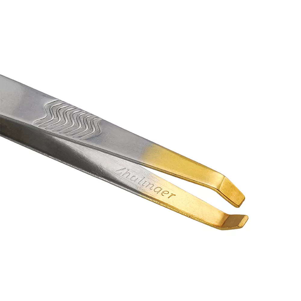 PINÇA PROFISSIONAL EM AÇO INOX COM PONTA RETA E DOURADA