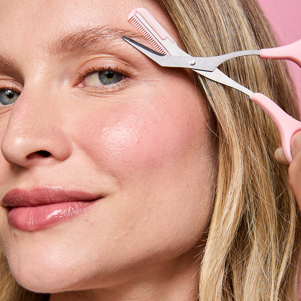 Tesoura versátil que une duas funcionalidades em um único produto:penteia e corta os fios das sobrancelhas com facilidade e precisão.
